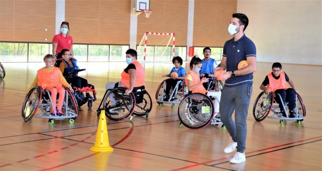 • Handfauteuil : maîtrise du fauteuil roulant sportif, du ballon, règles et stratégie de jeu sont mises en situation.