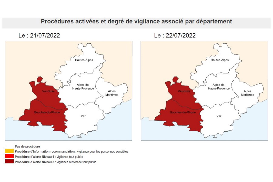 Le vendredi 22 juillet, l’alerte de niveau 2 de pollution atmosphérique sera maintenue dans les Bouches-du-Rhône pour le 6ème jour consécutif.