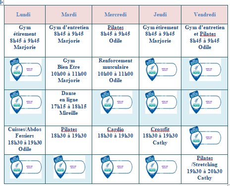 Voici le nouveau planning des cours pour l’année 2022-2023
