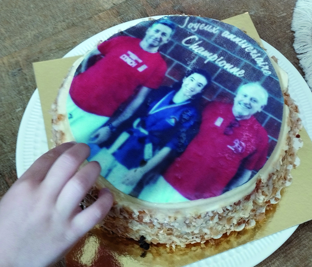 JOYEUX ANNIVERSAIRE A LOUISE QUI A EU DROIT AU GATEAU REPRESENTANT SA VICTOIRE (AVEC SES COACHS)AUX CHAMPIONNATS DE FRANCE.