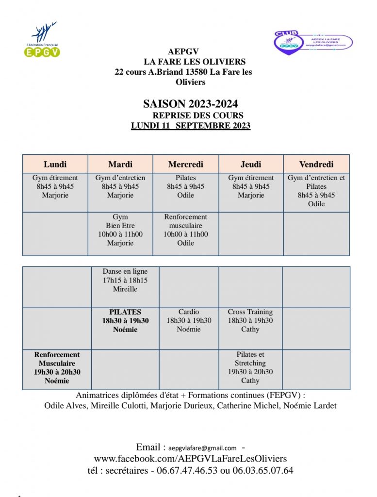Reprise des cours lundi 8 septembre 2025 On vous attend nombreux et nombreuses !