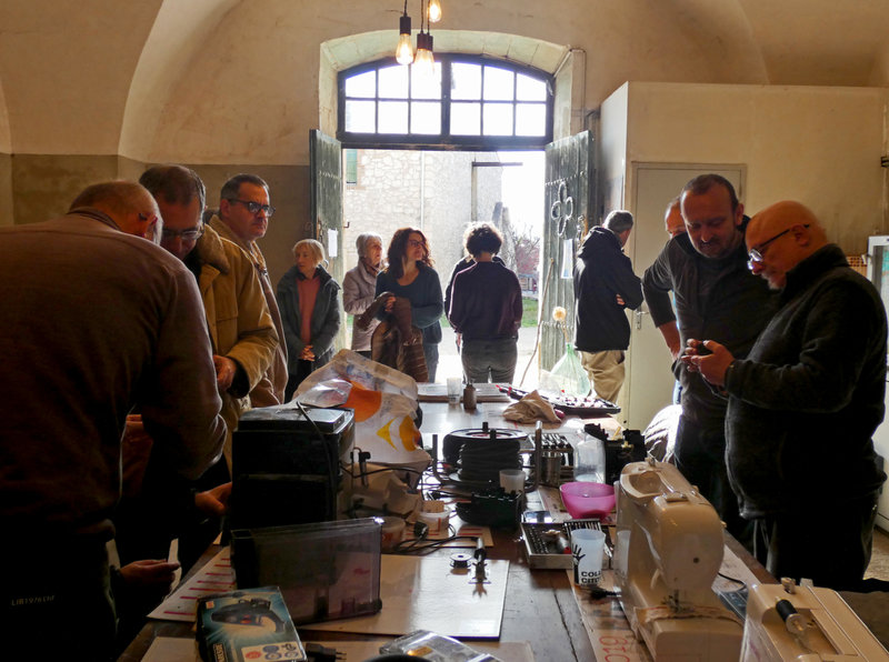 Eh bien, un temps, une matinée en l’occurrence, au cours de laquelle des gens amènent toutes sortes d’objets qu’ils voudraient faire réparer dans un lieu où les attendent des « réparateurs bénévoles », disponibles, qui vont tenter de donner une seconde, des fois une troisième, vie aux objets « malades »…