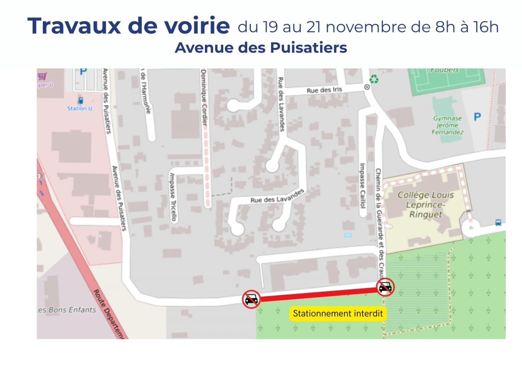 Des travaux auront lieu sur le bas côté de la chaussée de l’avenue des Puisatiers au niveau de la résidence « Jardins et Paysages »