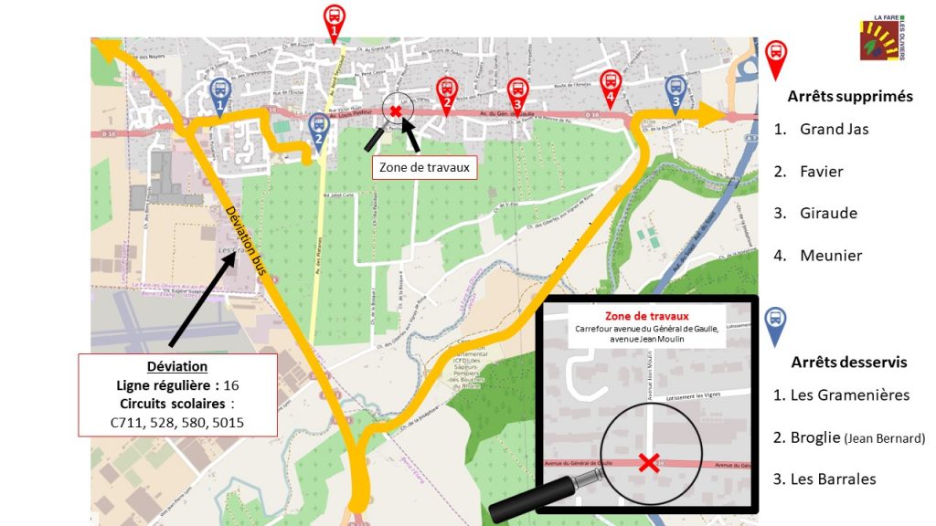 Seuls les arrêts Gramenières, Broglie et Barrales pourront être desservis (si votre bus s’arrête habituellement à ces arrêts).