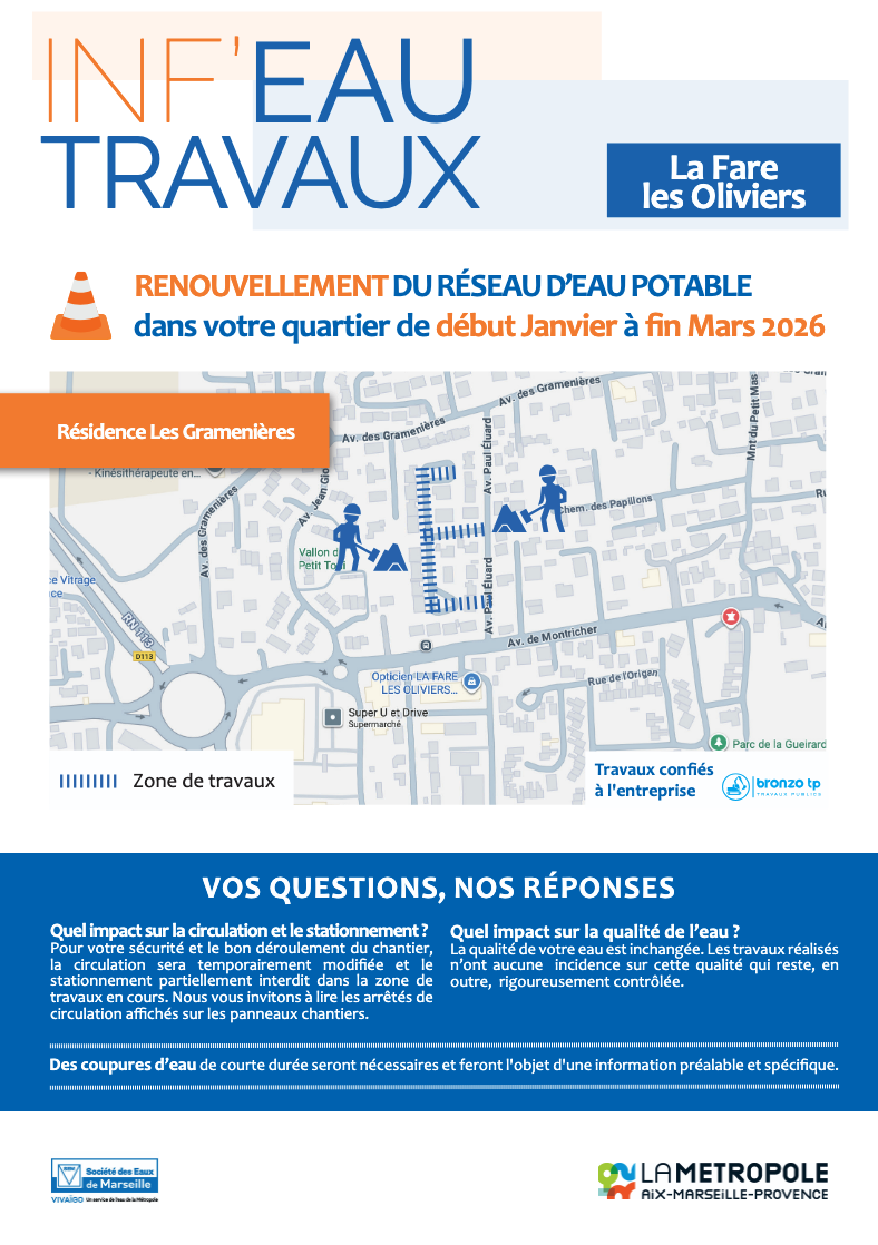 Vivaïgo vous informe que des travaux de renouvellement du réseau d’eau potable auront lieu :