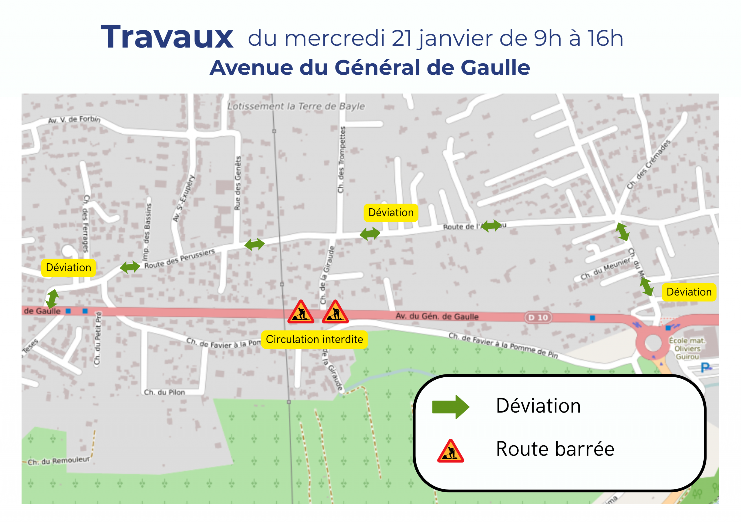 sur l’avenue du Général de Gaulle, au niveau de son intersection avec le chemin de la Giraude
