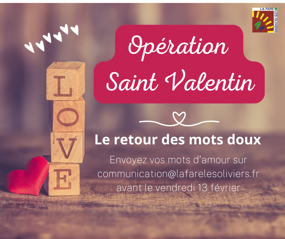 Envoyez votre message avant le vendredi 13 février à communication@lafarelesoliviers.fr